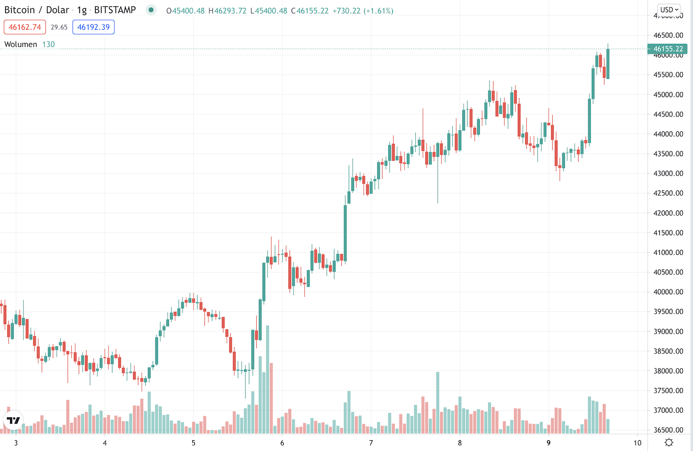 9 августа цена биткоина восстановилась выше отметки $46,000 впервые за 3 месяца.
