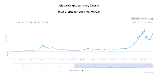 Интерес к криптовалютам среди крупнейших платежных систем – важный шаг, который свидетельствует о тотальном принятии цифровых валют на рынке традиционных финансов. Криптовалюты постепенно становятся частью сообщества. Эту тенденцию подтверждает рост капитализации. Если в начале 2018 года, незадолго до высказываний топ-менеджеров платежных систем, капитализация криптовалютного рынка не доходила до 850 млрд долл, то к концу августа 2021 года она уверенно перешла отметку в 2 трлн долларов.
