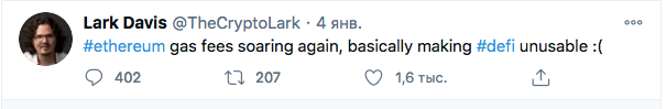 Эксперты уверены, что по мере увеличения количества ETH в контракте Eth2 цена ETH должна расти, а за ней будут расти и комиссии. Кроме того, предстоящий запуск фьючерсов на эфир CME Group (8 февраля), должен помочь ETH продолжить впечатляющее ралли цен.