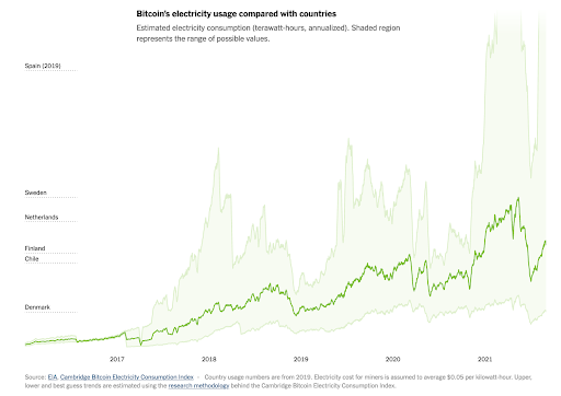 По данным Кембриджского университета, на мировой майнинг биткоина уходит примерно столько же электричества, сколько нужно для обеспечения потребностей целых стран – например, Швейцарии или Кувейта. По другим расчетам, на майнинг сегодня приходится порядка 0,5% всего потребляемого в мире электричества - около 91 тераватт-часа электроэнергии в год Это в 7 раз больше, чем требует вся IT-инфраструктура такого гиганта как Google.